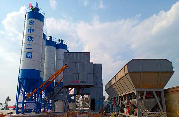 中鐵二局中標滇中引水項目后,第一時間將混凝土攪拌站這一艱巨任務交給方圓集團,這也是中鐵二局繼貴南高鐵、鄭濟高鐵、西藏109項目等多個重點項目后,與方圓集團的再次合作!方圓集團再次不辱使命,用最短的時間將兩臺HZS120D型集裝箱式攪拌站發運到云南楚雄市。僅用十天的時間,完成安裝調試工作,投入到工程建設當中。